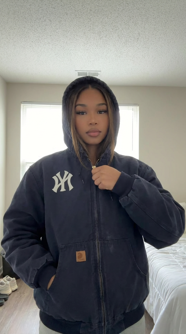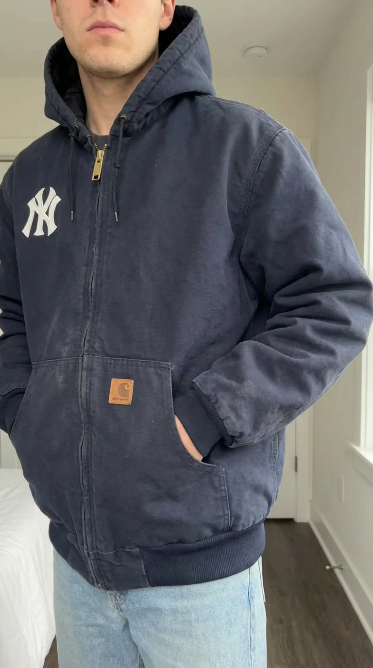 Vintage Dark Navy Hooded Yankees Jacket